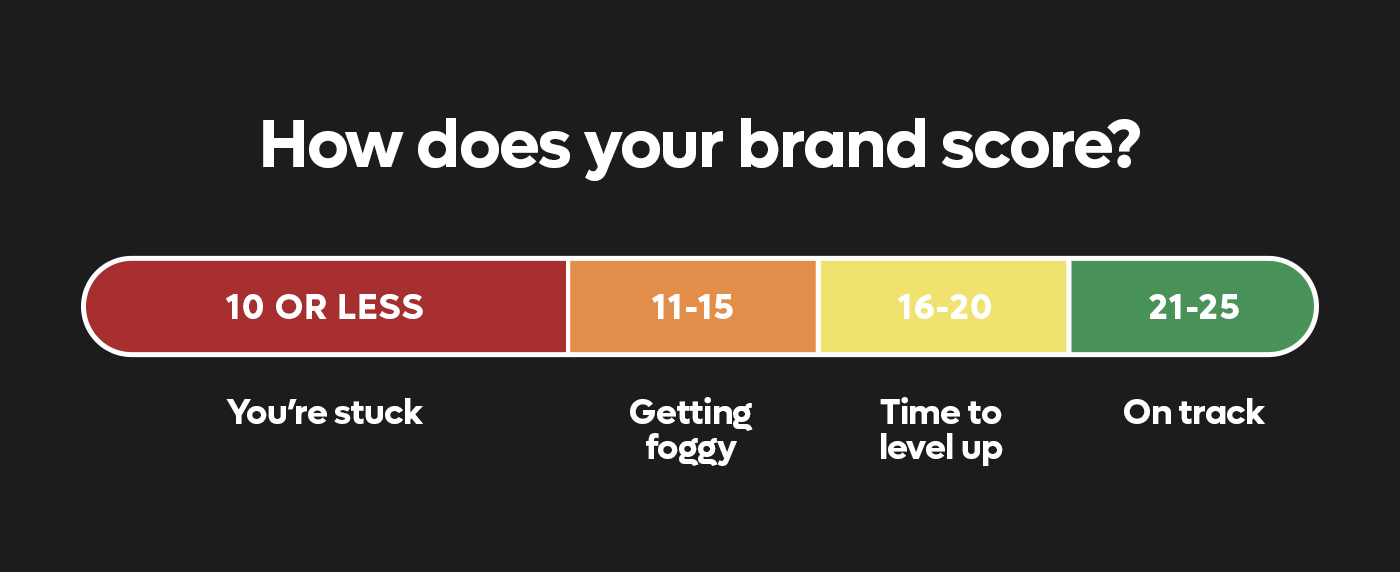 We made a free downloadable version of the Brand Scorecard so you can walk through this with your team, your creative partner, or even just by yourself on a Sunday night when you’re feeling reflective.